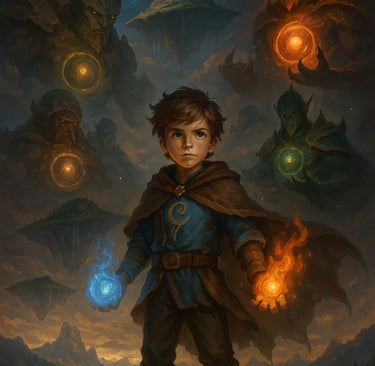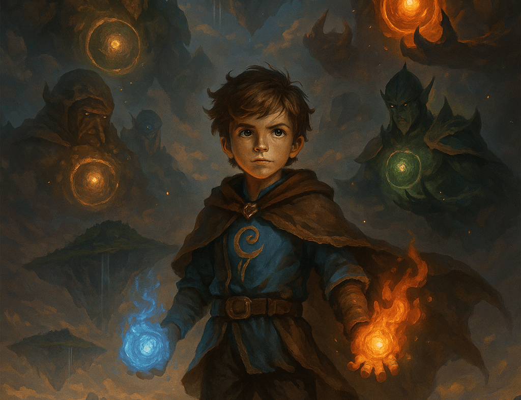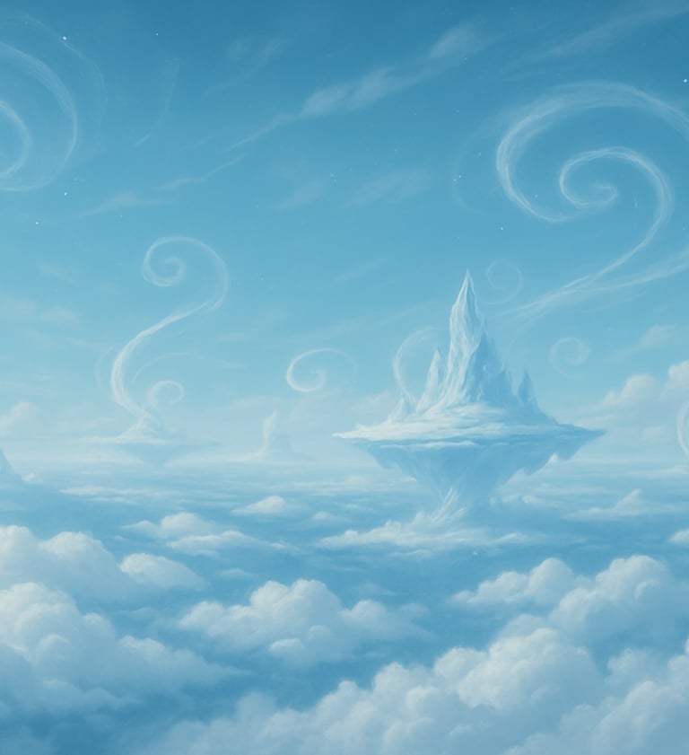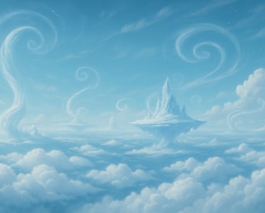 Aetherion é formado por planícies de nuvens sólidas, picos cristalinos suspensos e cidades erguidas em colunas de vento. O céu aqui é sempre mutável: ora azul límpido, ora tempestuoso, moldado pelos caprichos das correntes. Criaturas etéreas como aves gigantes, serpentes de vento e espíritos alados cruzam os céus, tornando cada viagem um risco. Seu povo é ágil e engenhoso, dominando o voo e a manipulação do clima. Aetherion representa a liberdade, a velocidade e o poder imprevisível do ar.