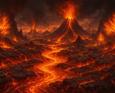 Pyronis, o Continente de Fogo, é um colossal bloco flutuante onde montanhas vulcânicas, rios de lava e planícies de cinzas ardentes dominam a paisagem. O céu permanentemente avermelhado, tingido por nuvens de fumaça incandescente, dá ao lugar uma atmosfera dramática e imponente. Suas cadeias vulcânicas ativas lançam colunas de fogo e cinzas, enquanto desertos escaldantes e florestas de cristais ígneos formam biomas únicos, vibrantes e perigosos. Nas arenas das Chamas Eternas, guerreiros e criaturas disputam glória em batalhas épicas sob um céu de brasas. Para os jogadores, o continente oferece missões arriscadas, dungeons em vulcões ativos e um constante risco de calor extremo que exige preparo, mas recompensa com aliados poderosos, segredos ancestrais e habilidades exclusivas do elemento Fogo.