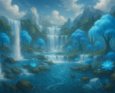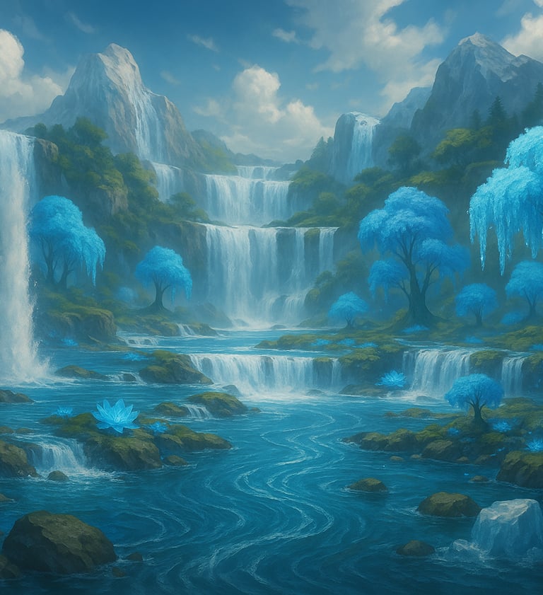 Thalassia é um arquipélago flutuante cercado por quedas d’água infinitas que caem no vazio sem fim de Lumora. Lagos suspensos, rios que correm pelo ar e mares cristalinos formam o cenário deste continente. Criaturas marinhas adaptadas ao céu — como serpentes voadoras e dragões aquáticos — deslizam entre as correntes. Seus povos dominam a arte da cura e da navegação nas águas aéreas, criando cidades em corais gigantes e barcos que flutuam entre as nuvens. Thalassia é o lar da renovação, do fluxo e da sabedoria ancestral das marés